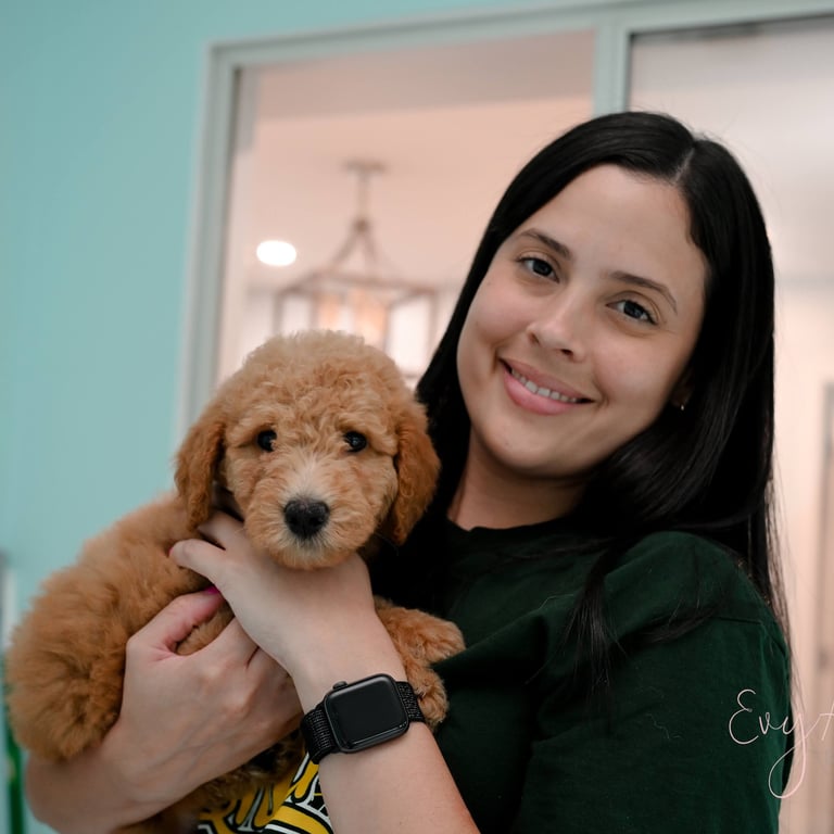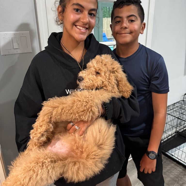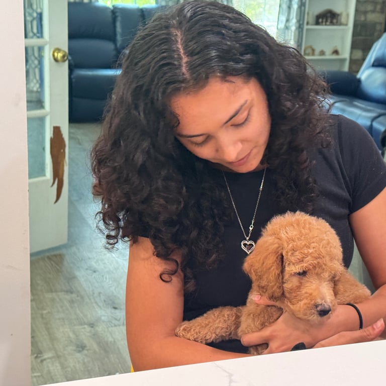 My name is Bayla. I am the first born of my siblings. I am a beautiful baby girl doodle and I love my new family.